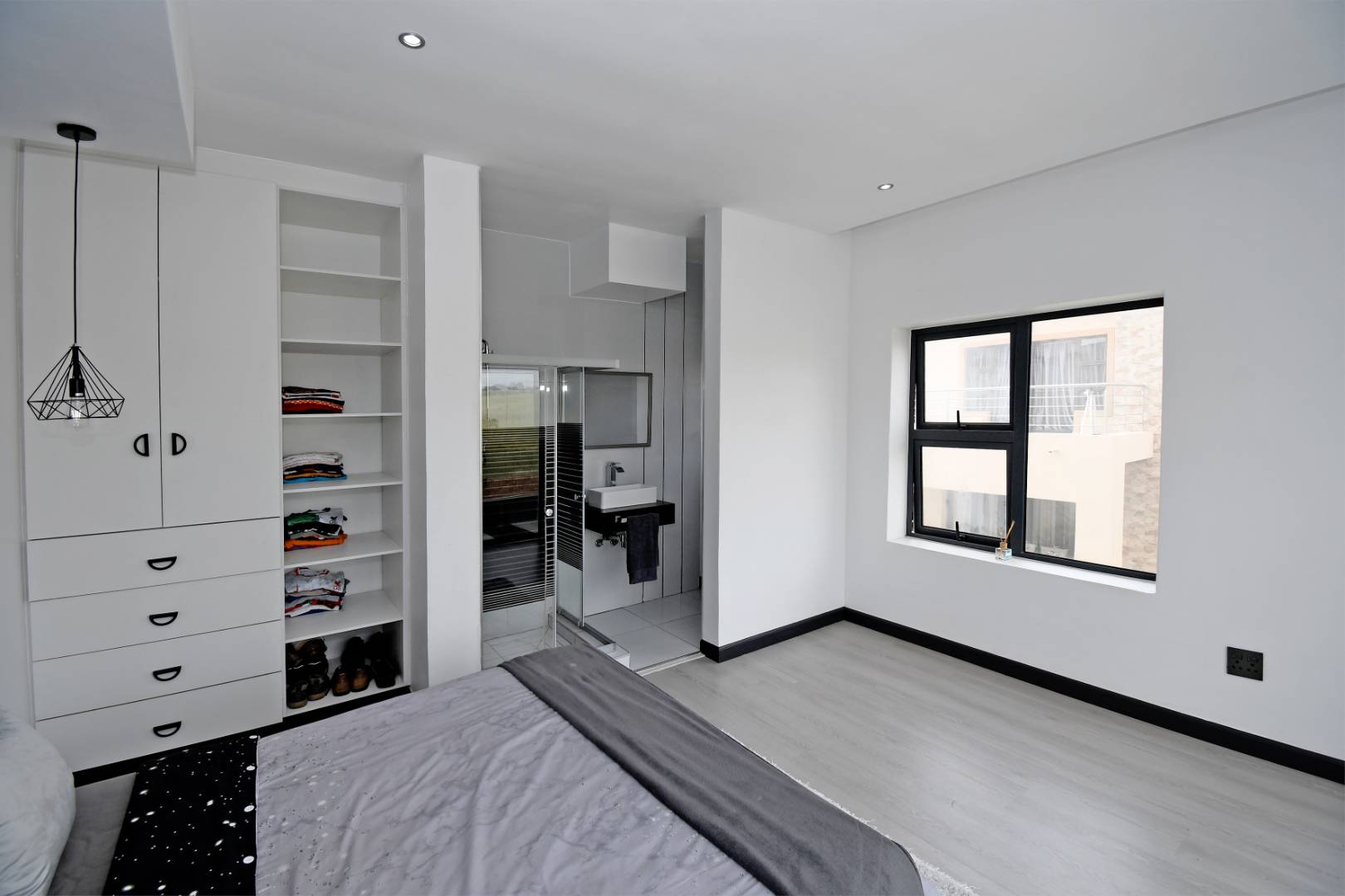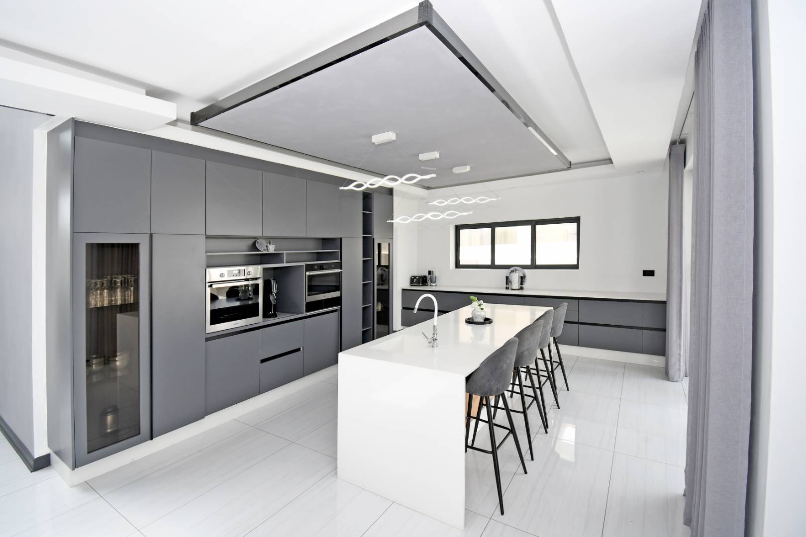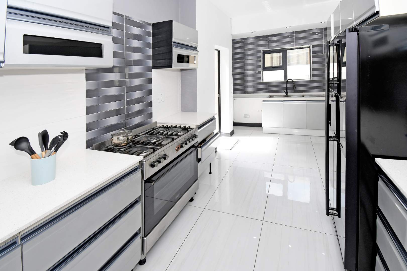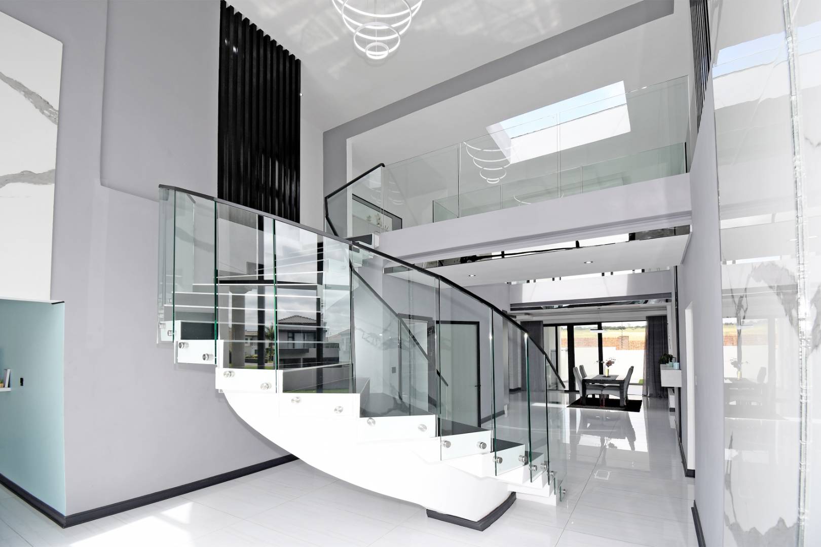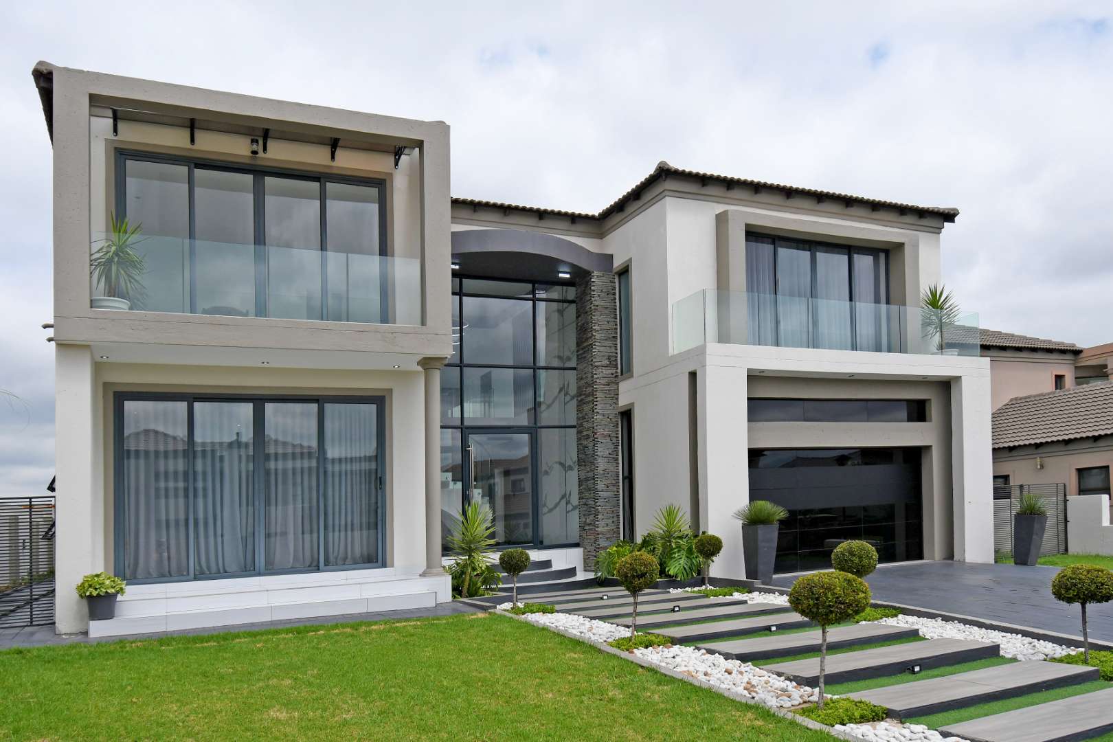 Designed for seamless living, the open-plan areas flow effortlessly into a state-of-the-art modern kitchen with high-end finishes, sleek high-gloss cupboards, and a massive scullery.
