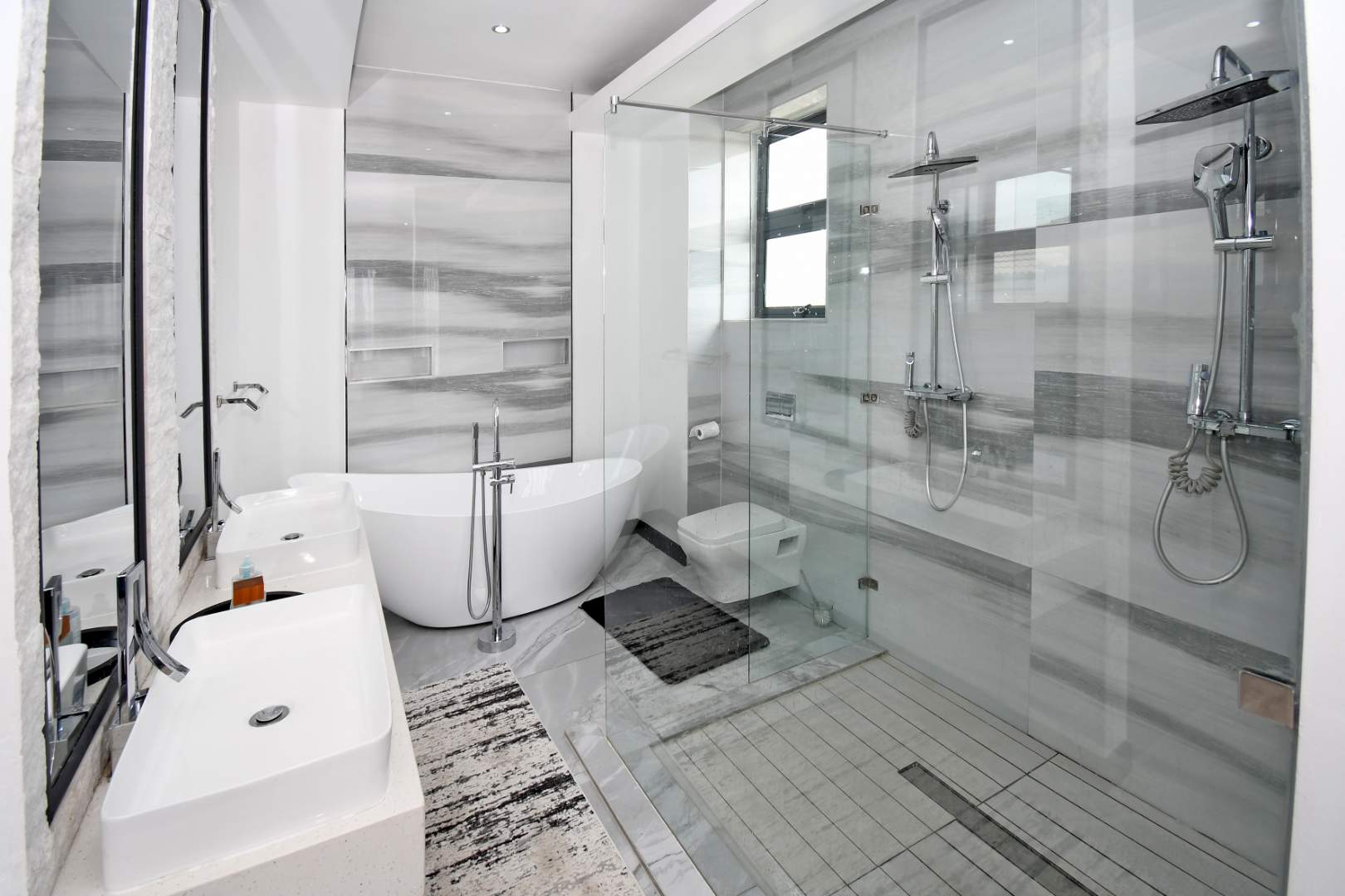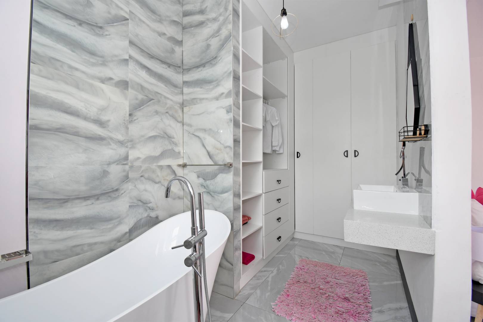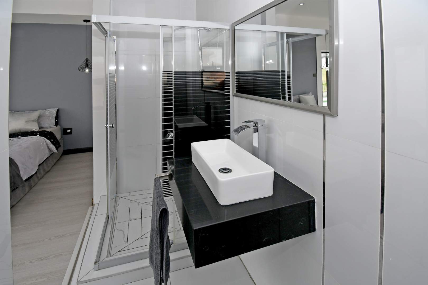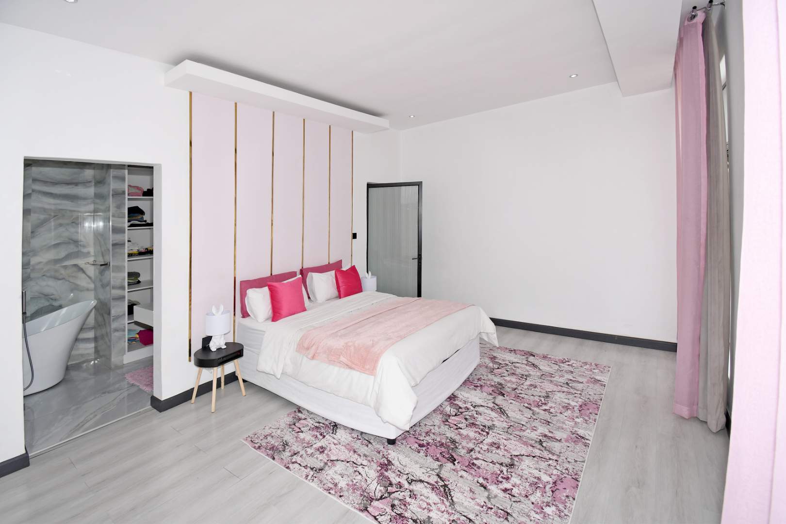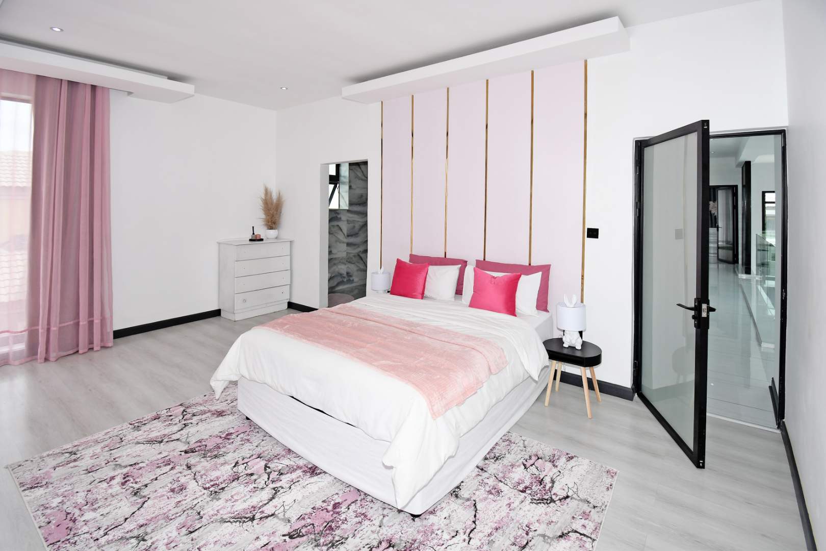 Designed for seamless living, the open-plan areas flow effortlessly into a state-of-the-art modern kitchen with high-end finishes, sleek high-gloss cupboards, and a massive scullery.