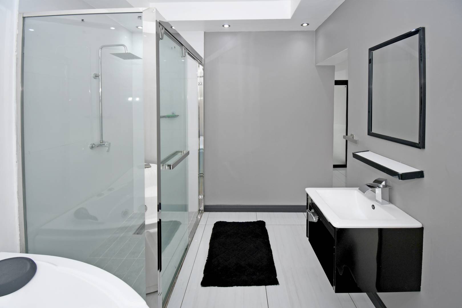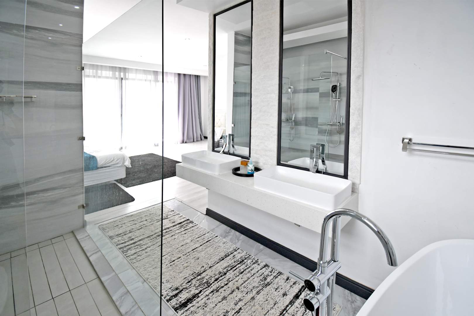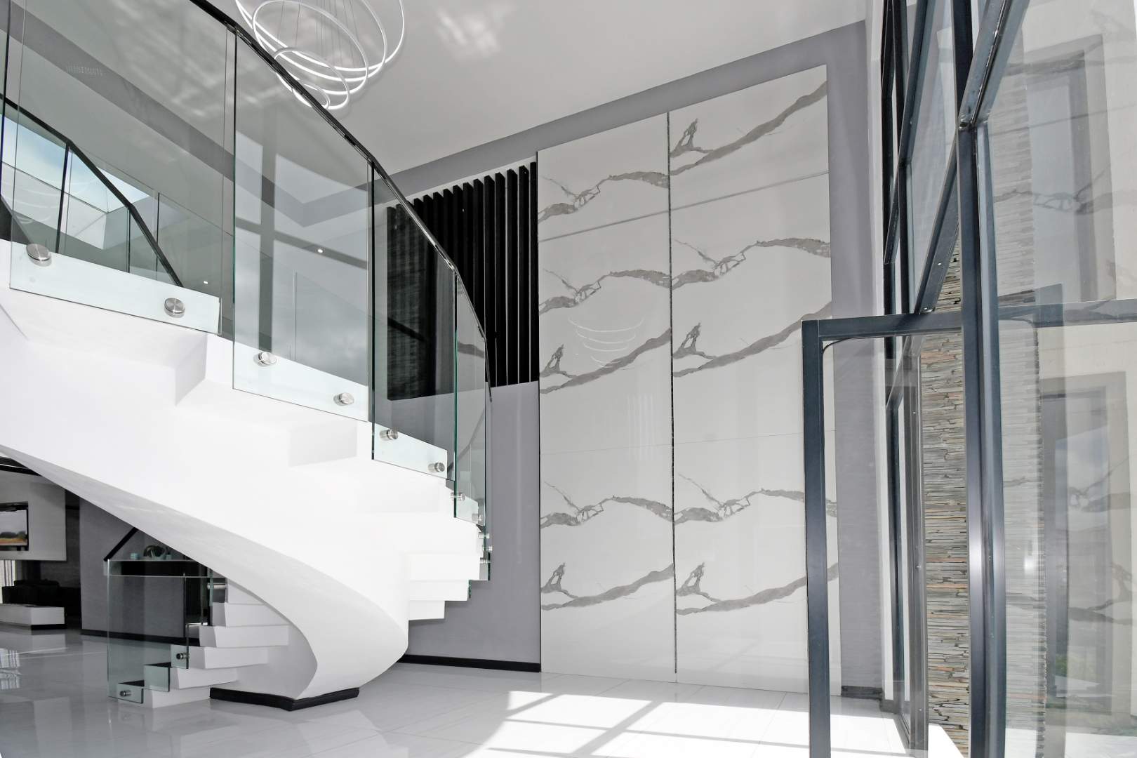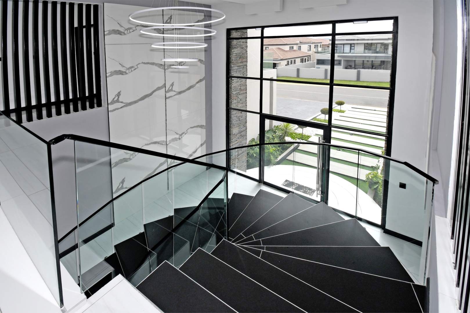 This breathtaking modern home makes an unforgettable first impression with its beautifully designed front façade and grand glass entrance doors. Inside, soaring high ceilings and expansive living spaces create an atmosphere of sophistication and luxury.