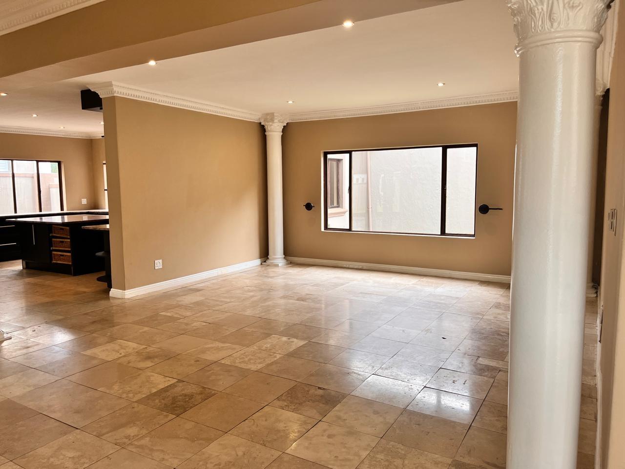 The heart of the home is a beautifully appointed chefs kitchen featuring premium countertops, a gas hob, ample, cabinetry, and a separate scullery. Flowing seamlessly into the dinning area and multiple lounges, the layout creates effortless indoor and outdoor living.