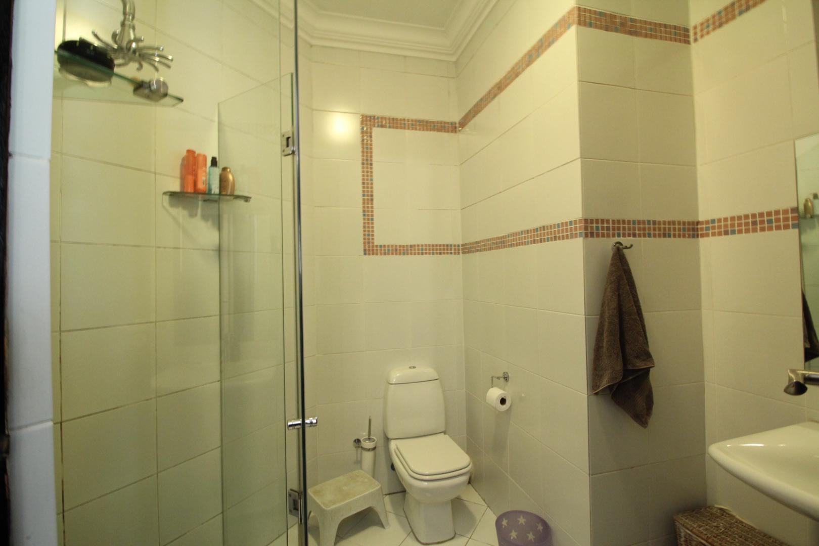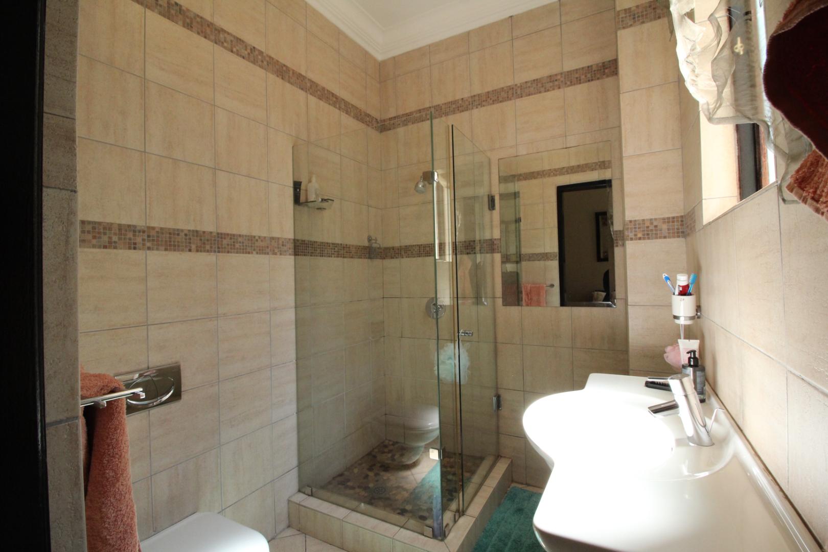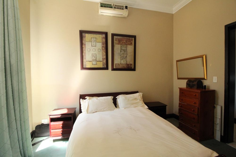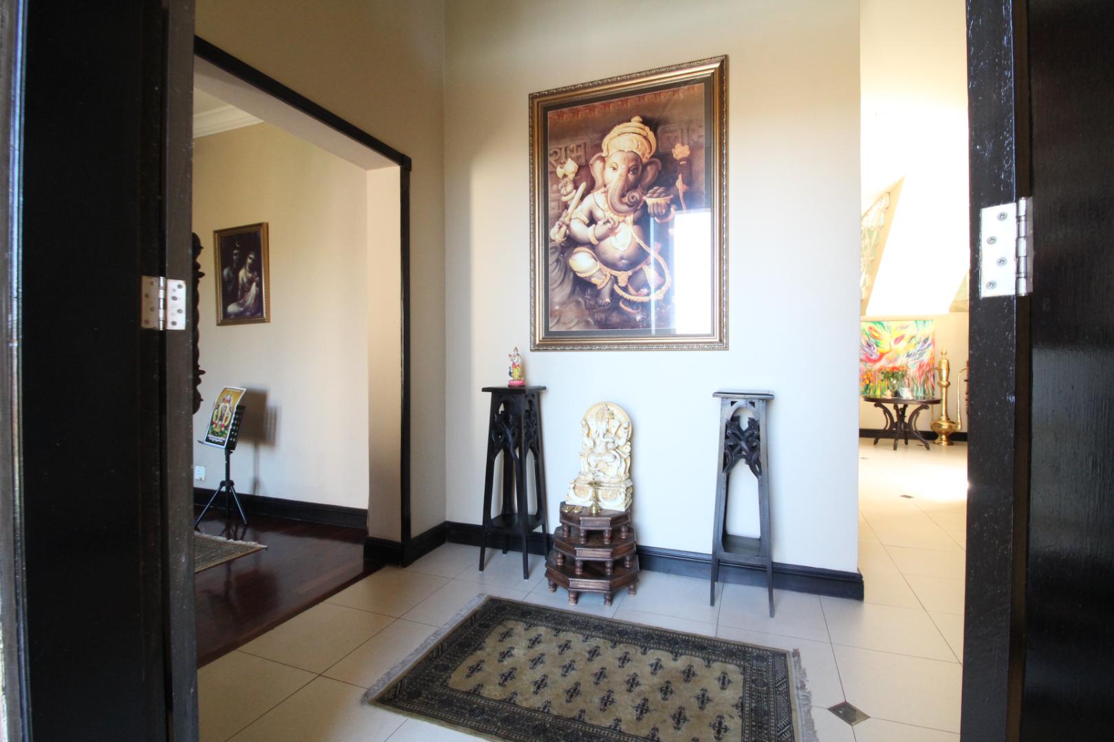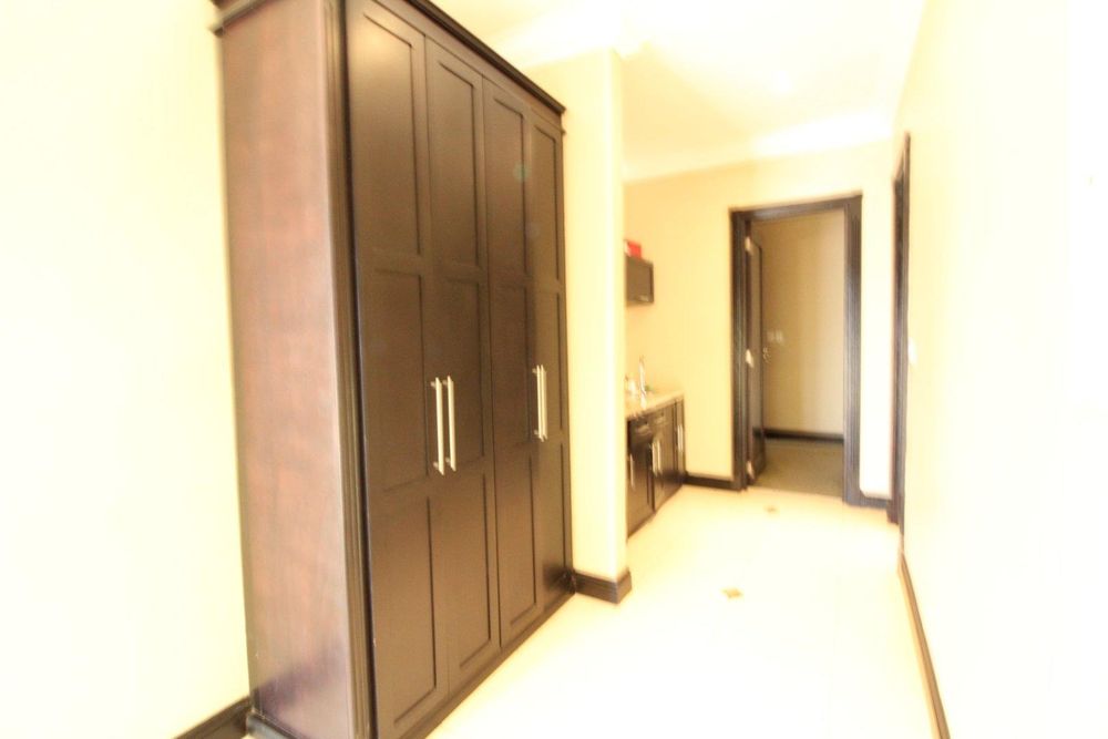 Upstairs, the luxurious master suite offers a private sanctuary with plush carpeting, a walk-in dressing room, generous built-in cupboards, and a spacious en-suite bathroom. The bedroom also enjoys access to a shared balcony, offering peaceful views across the estate.