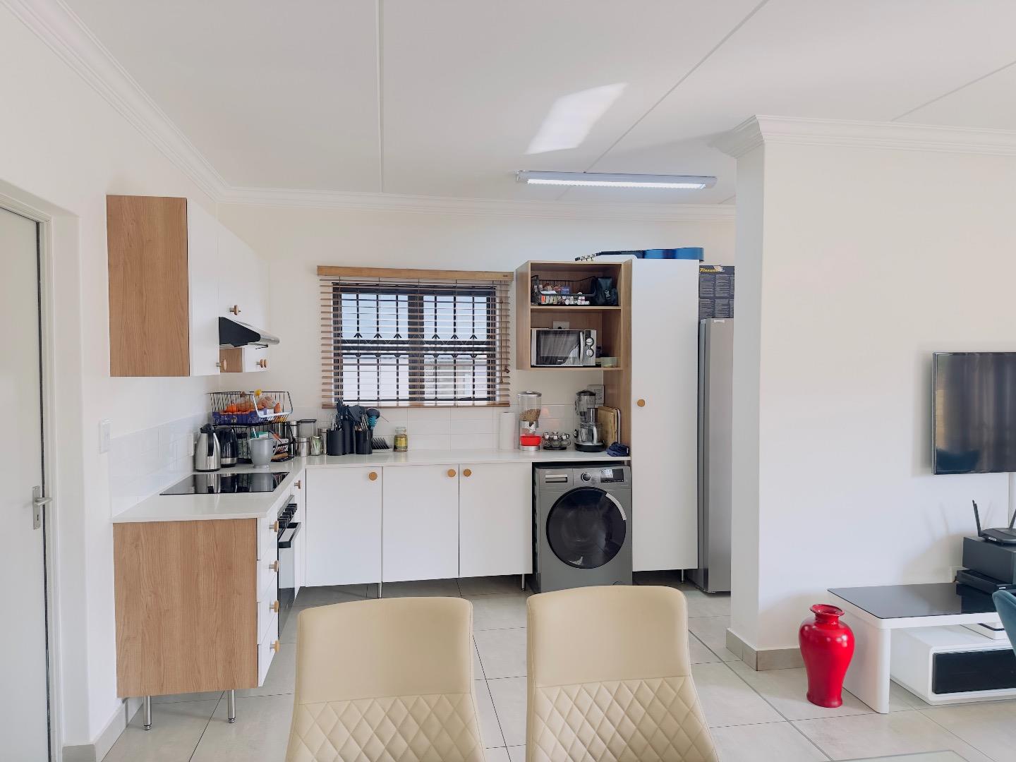 Additional highlights include a single automated garage with direct home access, extra adjacent parking, a solar, prepaid electricity and ready to use DSTV and fibre connectivity.
