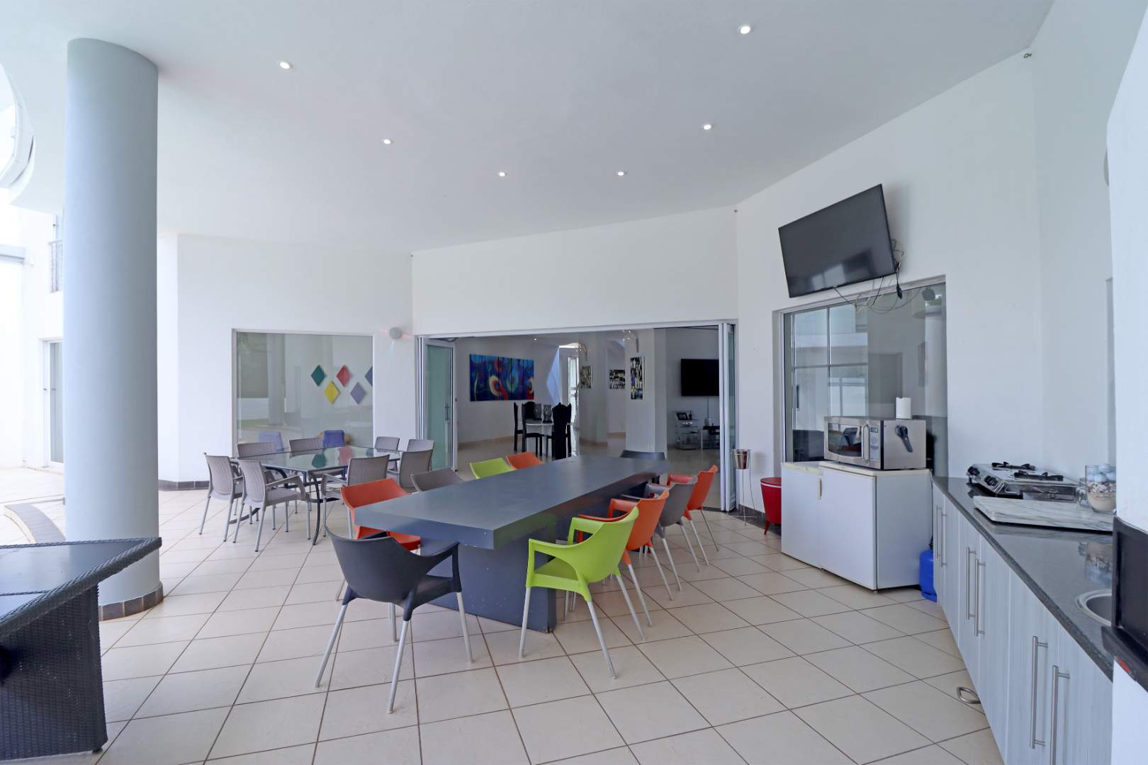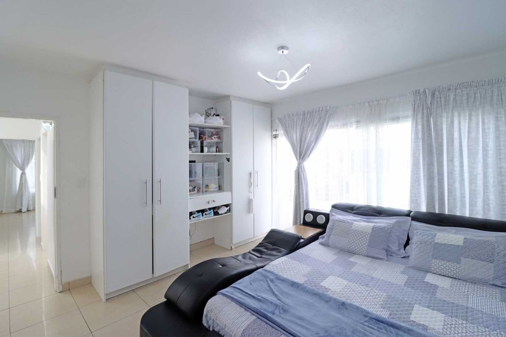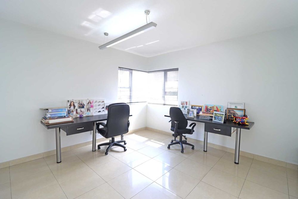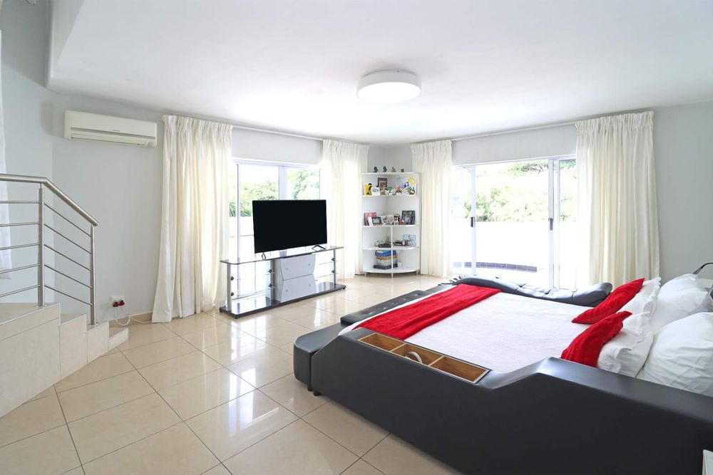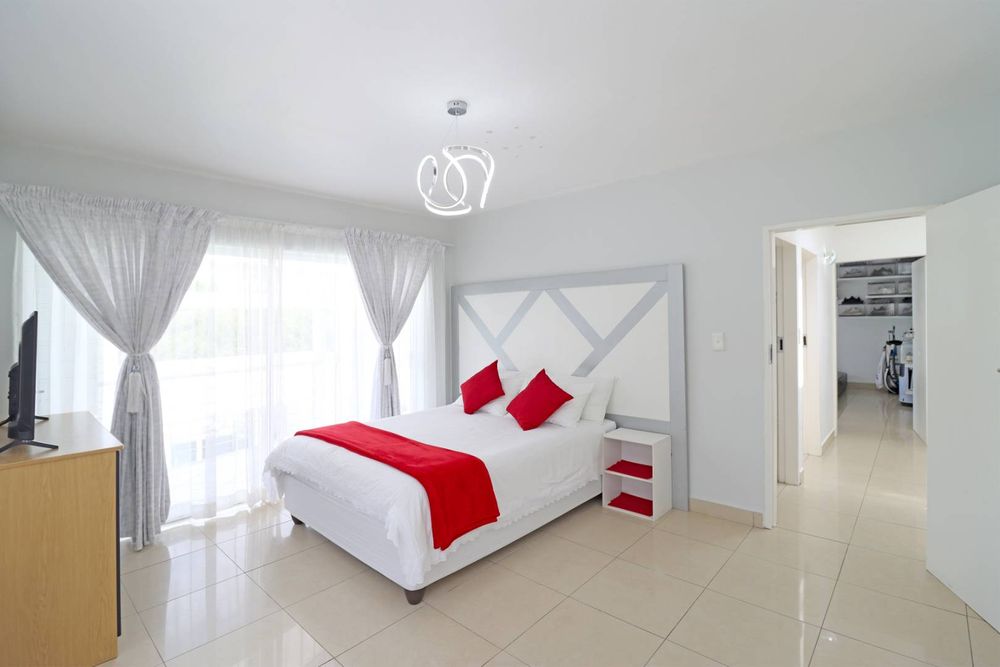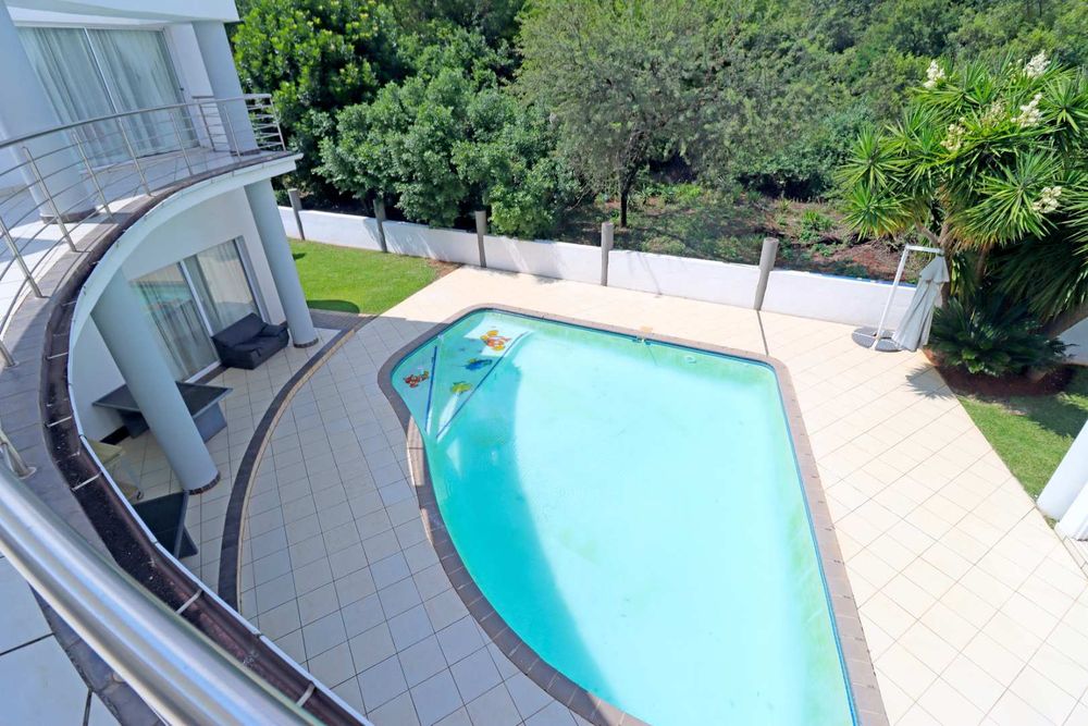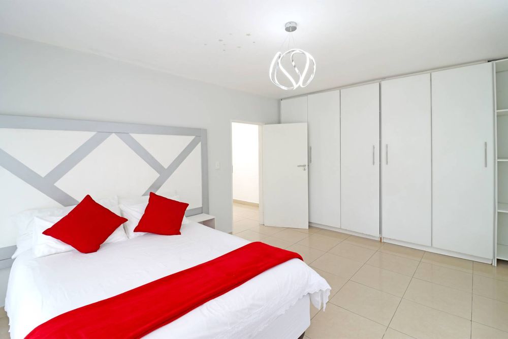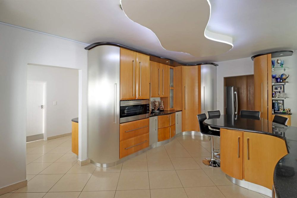 At the heart of the home, a designer kitchen with separate scullery balances beauty and functionality, flowing effortlessly into the living spaces and out onto a covered patio with a built-in braai. Here, the home opens to a resort-style garden and sparkling pool, offering a private sanctuary for relaxation and entertaining.